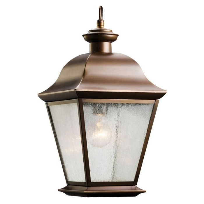 Уличный фонарь крепится к поверхности с помощью декоративного кронштейна. Четырехгранная форма, окрашенная под черное золото, подчеркнет экстерьер загородного участка и обеспечит яркое освещение.